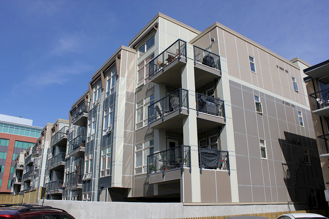 This project included four storeys of wood frame construction; a two-level underground parkade; 82 residential units; a hydronic mechanical system with HRV; and an individual suite metered electrical system.